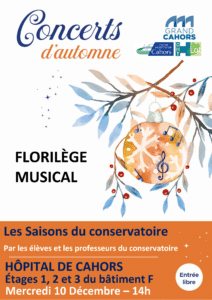 Le mercredi 10 décembre à 14h, nous aurons le plaisir d’accueillir les élèves et les professeurs du conservatoire de musique du Grand cahors pour les concerts