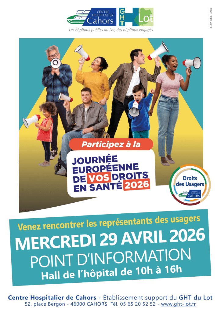 Dans le cadre de la Journée Européenne des Droits en Santé, le CH Cahors organise un stand d’information à destination des usagers :